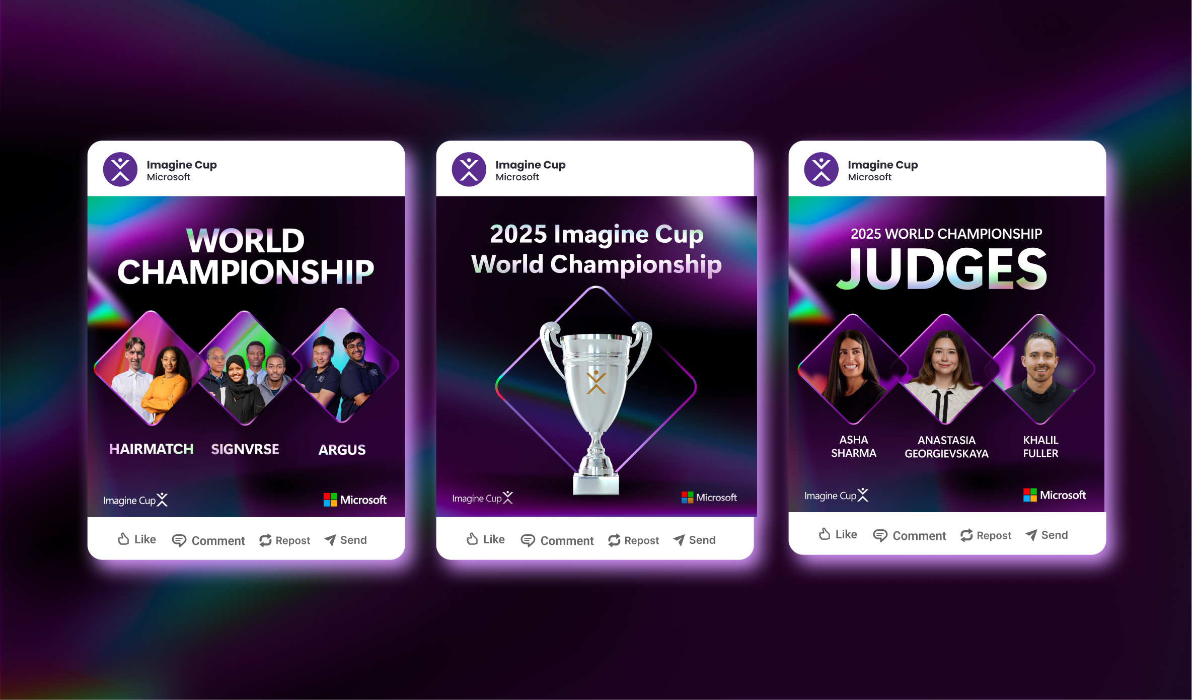 Challenge: Each year, the Imagine Cup World Championship brings together a new wave of talented student innovators. Our challenge is to create a dynamic visual identity that not only celebrates their dedication and groundbreaking ideas but also captures the excitement of the competition while staying relevant to current trends in innovation.